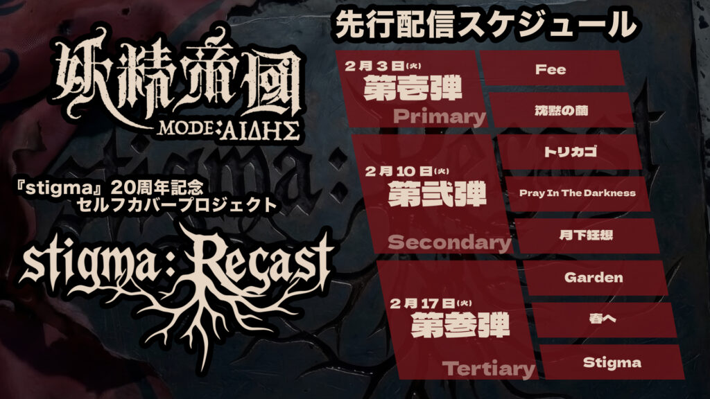 本日より『Stigma』20周年プロジェクト、セルフカバー『Stigma:recast』第壱弾『Fee』『沈黙の繭』配信開始!